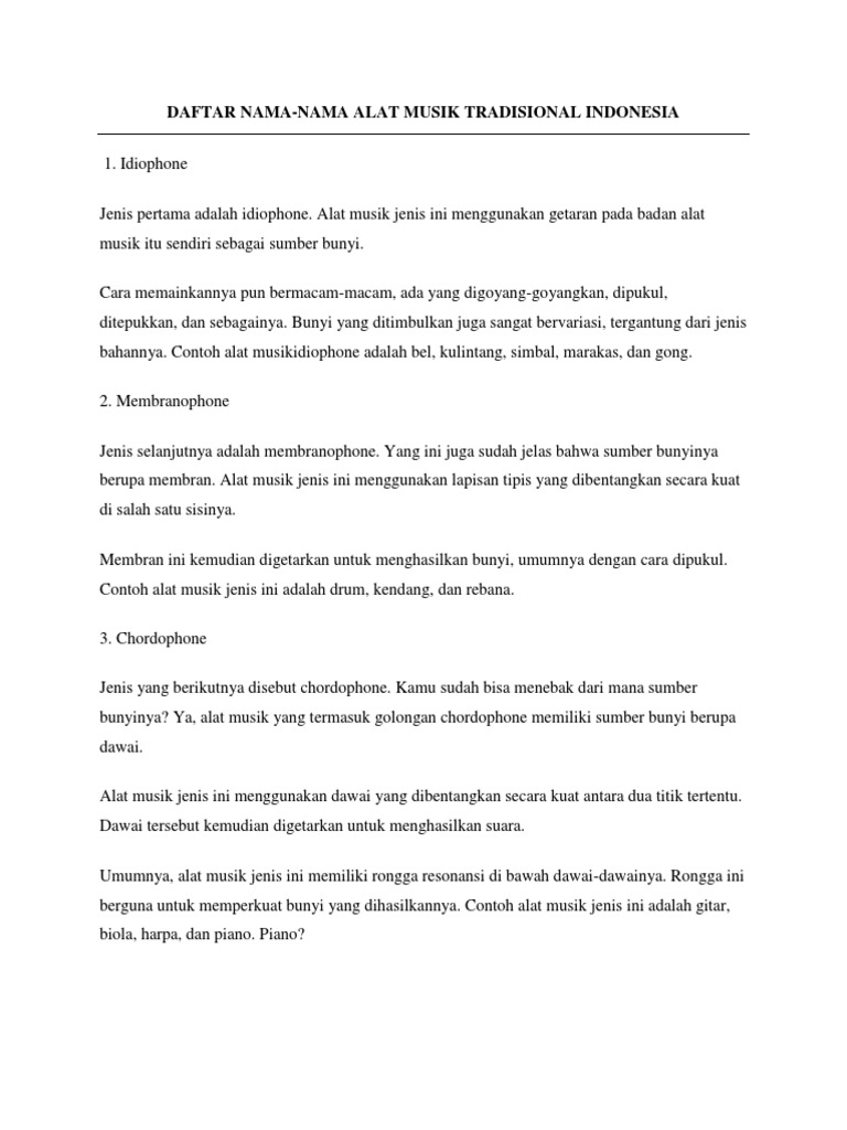 4 harmonis alat musik harmonis adalah alat musik yang dimankan untuk memainkan harmoni pada suatu lagu. Alat musik sentuh atau biasa disebut dengan alat musik tekan adalah alat musik yang cara memainkannya cukup dengan ditekan. Gamelan merupakan sekumpulan alat musik yang terdiri dari gong bonang gambang. Cara memainkan alat musik ini yaitu dengan memukul dua tubuh bambu atau pemukul kayu dan dimainkan dengan dua tangan. Cara bermain alat musik teradisional these pictures of this page are about:cara menilai alat musik recorder. Biola adalah alat musik chordophone yang menggunakan senar untuk membunyikannya, biola berbeda dengan gitar karena biola dibunyikan dengan cara. Chordophone adalah alat musik yang sumber bunyinya dari tali senar, kawat. Sehingga menikmati musik tidak lagi harus memainkannya tepat di depan mata. Angklung di sini merupakan alat musik khas dari budaya masyarakat jawa barat. Biasanya alat musik ini dilengkapi dengan dawai dan senar, sehingga tinggi rendahnya nada dihasilkan oleh panjang pendeknya dawai. Cara memainkan alat musik gong ini adalah dengan dipukul dengan menggunakan pemukul kayu yang dibalut kain tebal. Alat musik ini tergolong musik aerofon yang mengeluarkan suara. Satu tangan memegang rangka angklung, dan satu tangan lainnya menggoyangkan kerangka angklung.