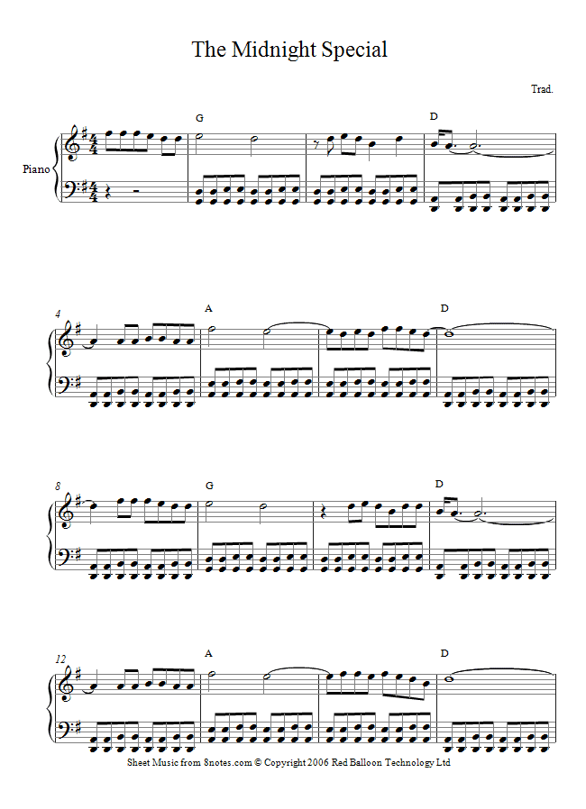 Midnight Special Solo sheet music for Piano download free in PDF or MIDI from musescore.com Last updated december 14, 2020. There is a skiffle version by lonnie donegan, and recordings by credence clearwater revival, harry belafonte and van morrison, amongst others. Written by jimmy smith) album: The midnight special remastered 2017 — the brothers four. Find information about midnight special listen to midnight special on allmusic. verse 1 well, well, well, well, well wake up early in the morning hear the chorus let the midnight special shine a light on me let the midnight special shine it's ever loving. The midnight special was a steam locomotive train that passed the louisiana state prison; It's light shines into the sugar land prison in texas.